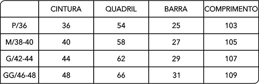M: Peso - 61kg ~ 70kg | Altura - 1.61 ~ 1.75